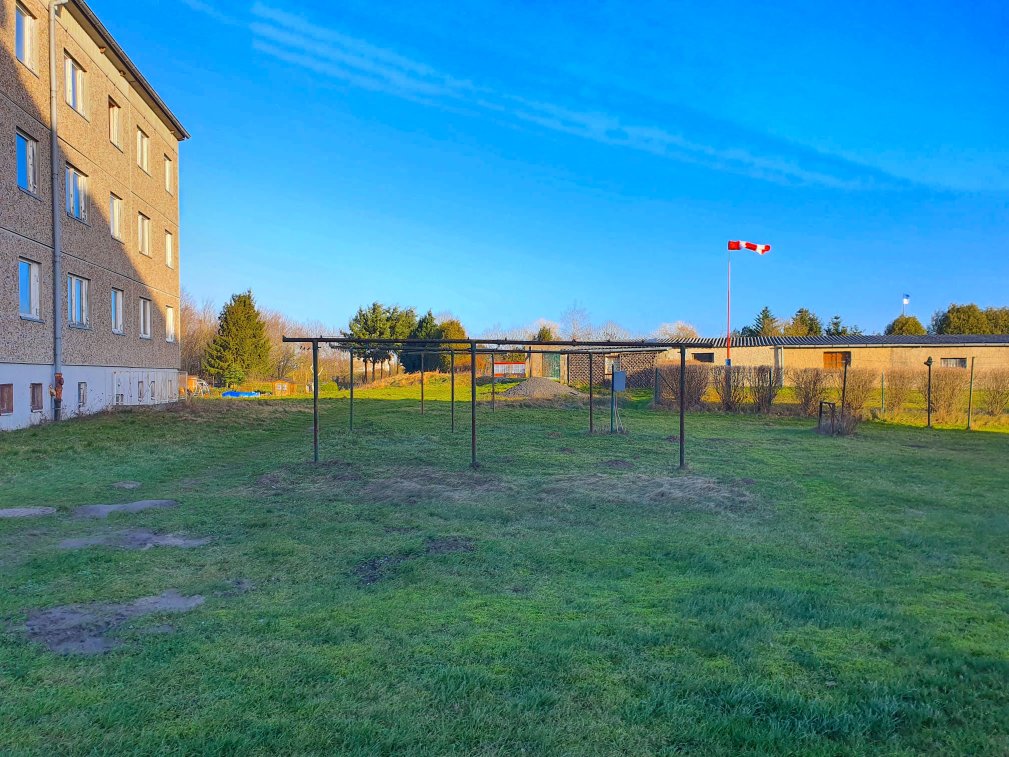 Zu den Wohnungen gehört jeweils ein KFZ Stellplatz, ein Keller und auch noch einmal Stauraum auf dem Dachboden. Ein großer Garten und Spielplatz ist direkt hinter und neben dem Haus. Vor dem Haus befindet sich direkt eine Bushaltestelle, sodass die Anbindung nach Loitz und Greifswald sehr bequem auch ohne Fahrzeug ist.