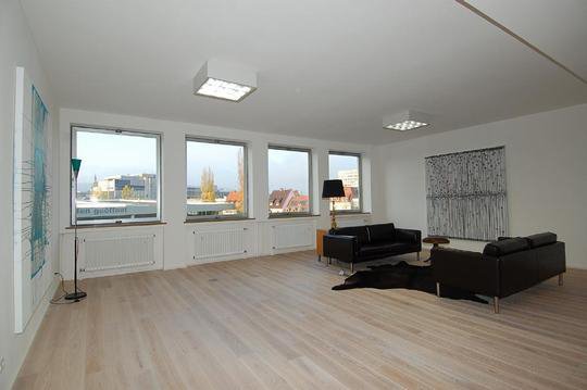 Diese frisch modernisierte und teilmöblierte Loft-Etage befindet sich im 3. Obergeschoss eines Hauses mit 3 Wohn- und 2 Büroeinheiten.