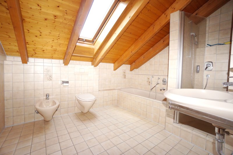 Das großzügige Tageslichtbad ist neben einer Dusche mit einer Badewanne ausgestattet.