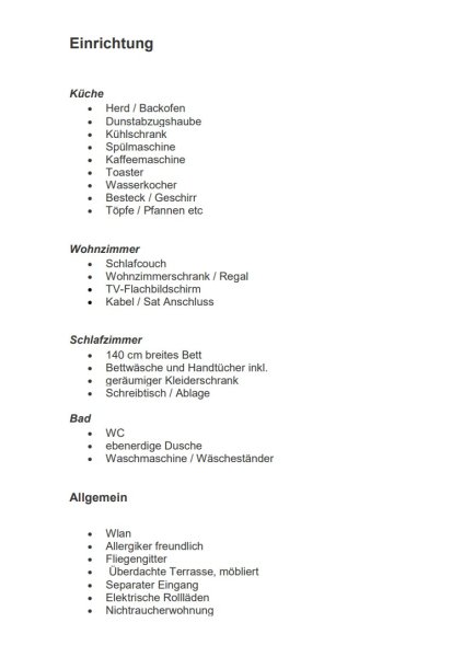 Die Miete von 950 Euro beinhaltet alle Nebenkosten zzgl. Endreinigung. Die Nebenkosten erhöhen sich pro Person um 75 Euro.