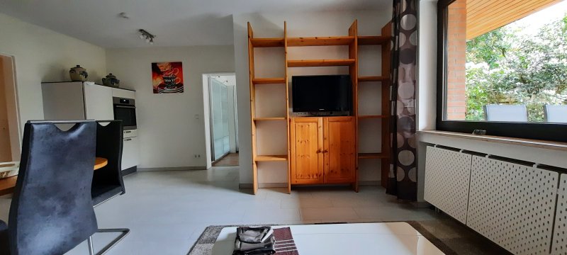 Die überdachte, möblierte Terrasse mit Blick in den Garten steht zur alleinigen Nutzung zur Verfügung. Rauchen ist auf der Terrasse möglich. In der Wohnung ist das Rauchen nicht erlaubt.