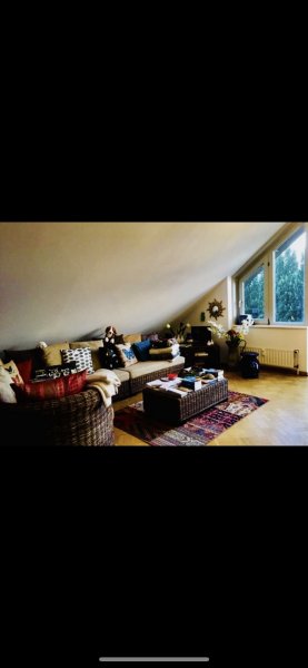 Außergewöhnlich geschnittene, lichtdurchflutete Wohnung mit Blick ins Grüne im Dachgeschoss eines Mehrfamilienhauses für einen mindestens viermonatigen Aufenthalt vollmöbliert unterzuvermieten.