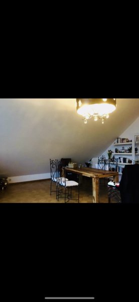 Die Wohnung ist komplett möbliert, bietet aufgrund der Dachschrägen aber dennoch viel Platz. Eine Waschmaschine ist vorhanden.