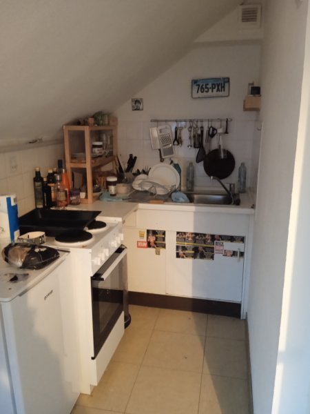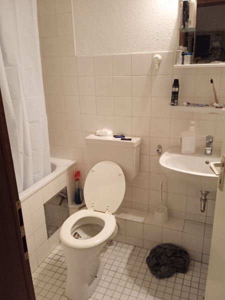 Die Wohnung besteht aus der im Bild gezeigten Küche, dem Bad und einem großen Wohnraum. Dadurch das die Wohnung zum Innenhof raus geht ist es sehr ruhig. Ein großer Einbauschrank sowie eine kleine Kammer bieten genug Stauraum.