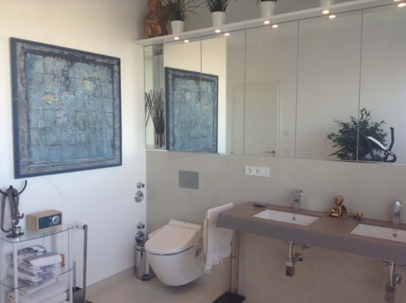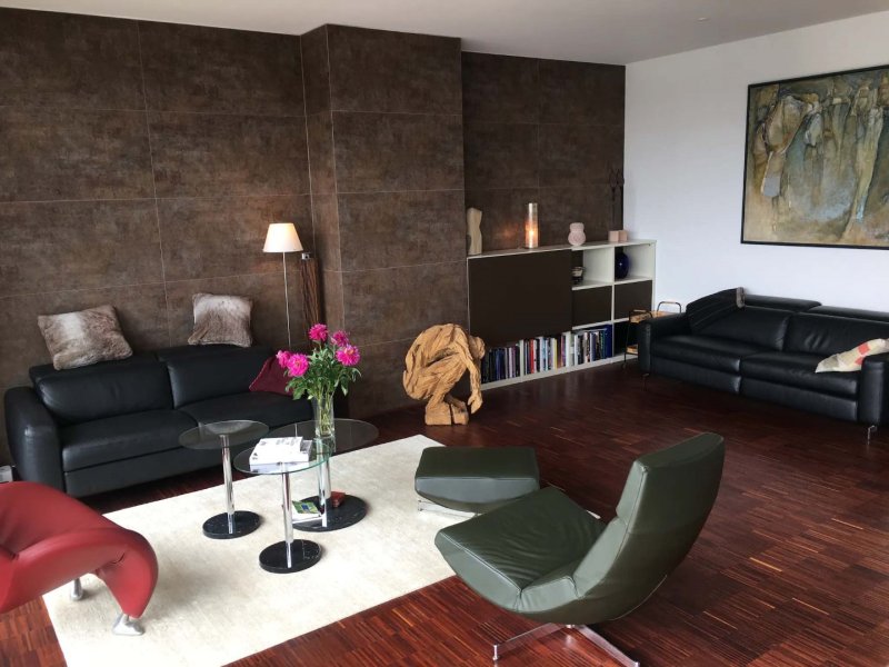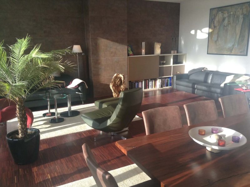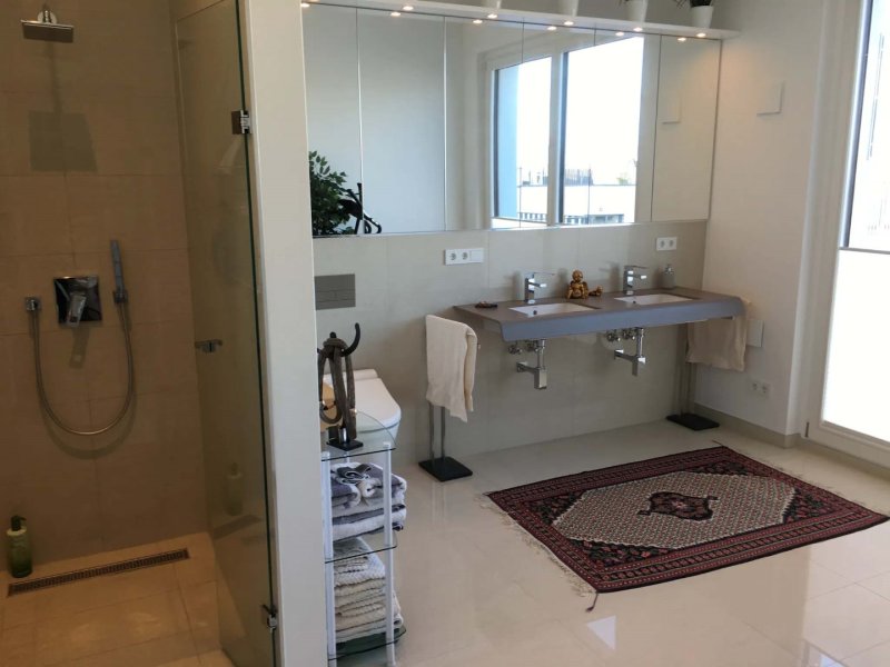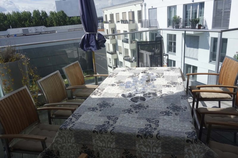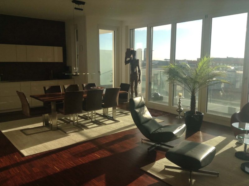 private Dachterrasse eröffnet ein Leben im Grünen, um sich zu sonnen, zu essen, zu entspannen oder einfach nachts die Sterne zu betrachten. Die komfortabel eingerichtete 3-Zimmer-Wohnung verfügt über eine zusätzliche Südterrasse. Die luxuriöse Ausstattung von Küche, Bädern, Wohn-, Arbeits- und Schlafräumen wird durch moderne technische Ausstattung wie Raumlüftung und hohen Schallschutz ergänzt. Neben der hochwertigen Ausstattung sorgen