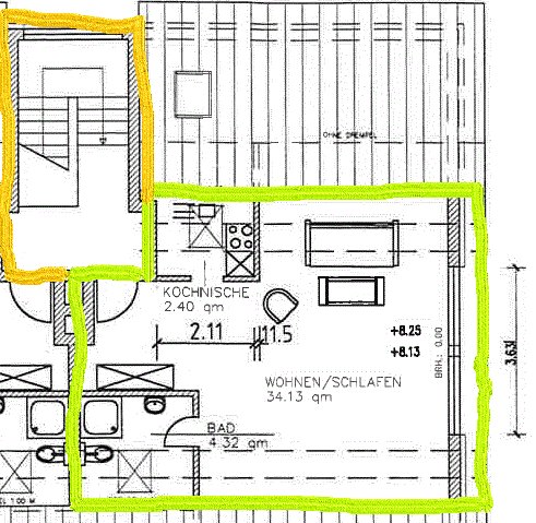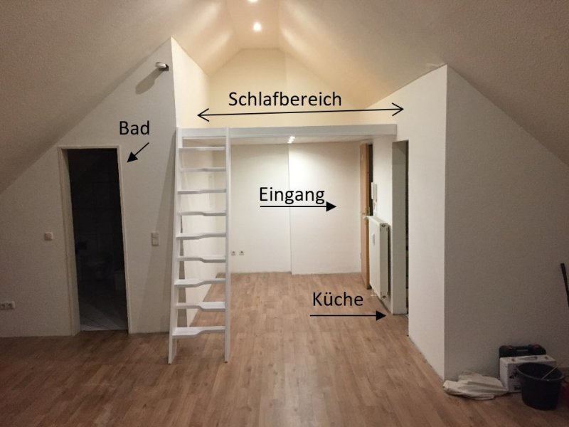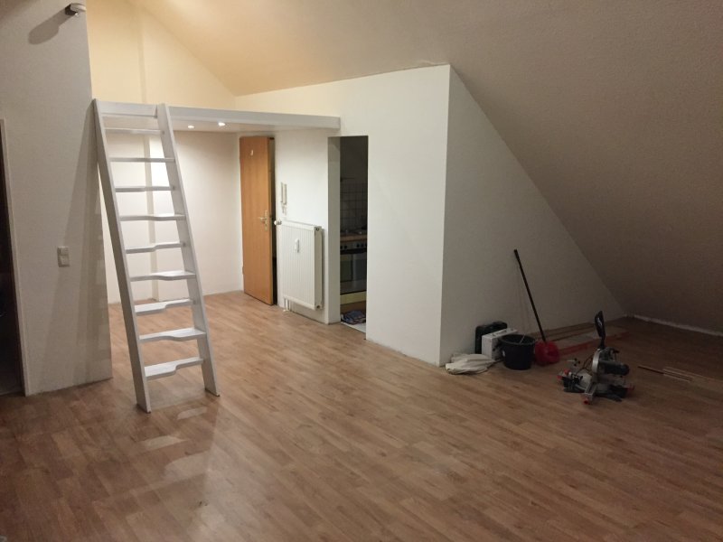 Modernes 1,5 Zi. Apart. im 4.OG ca. 60 m², KM 400€+ NK, KDB, Wohn- Esszi, Schlafbereich auf 2. Ebene, Garten, Waschkeller, Fahrradschuppen, zuzüglich Stellplatz wenn gewünscht.