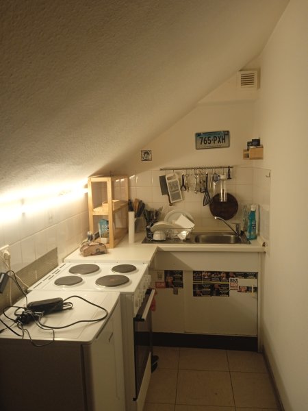 Die Küche verfügt über eine Abluftfunktion und es gibt noch eine kleine Vorratskammer.