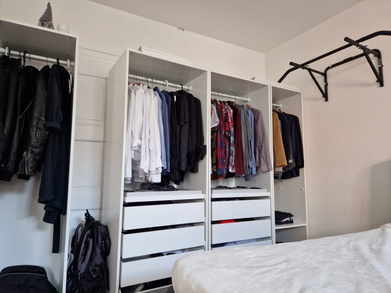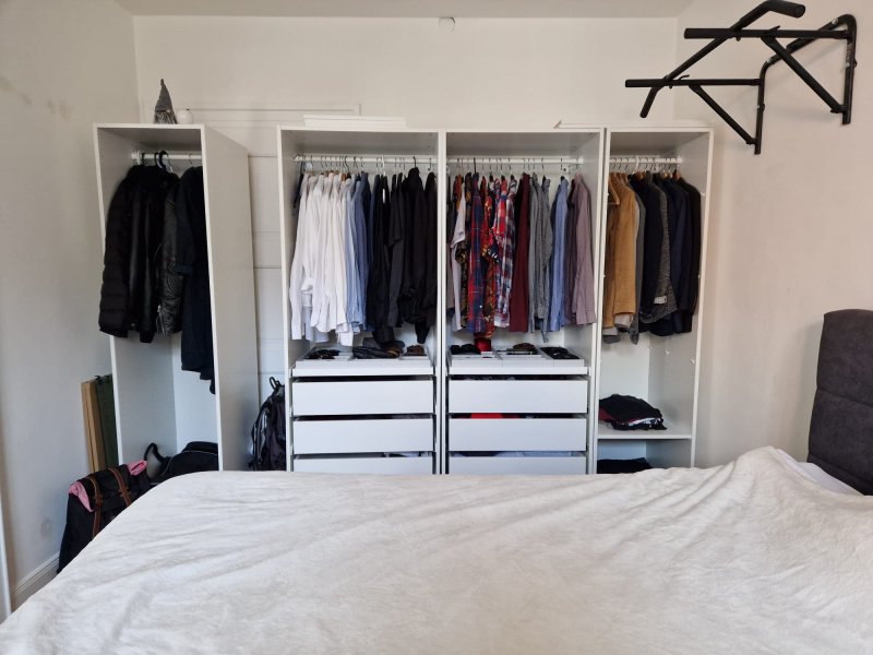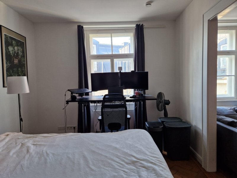 Es ist komplett möbeliert mit einem 180x200x71cm Bockspringtbett, großem Paxschrank, großer Couch, Regal, höhenverstellbarem Tisch + Doppelter Bildschirm + Docking Station + Laptophalterung + Licht + WebCam + Internetverstärker + gefederter Arbeitsschreibtischstuhl (perfekt, wenn du mal Home Office machen möchtest).