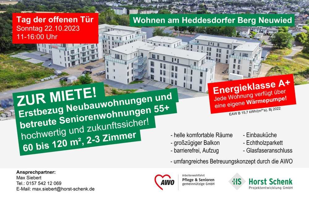 Nebenan befindet sich das Betreuerbüro der AWO Neuwied, welches in den Servicezeiten durch einen Mitarbeiter der AWO besetzt und den Mieter entsprechend weiterhelfen kann.