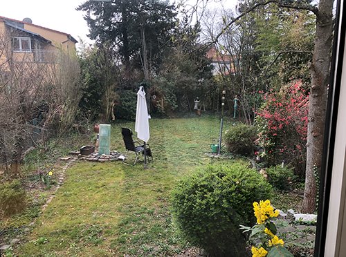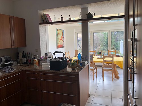 Das 38qm-Zimmer liegt im Erdgeschoss,ist hell mit Erker und gr. Fenstern,Kachelofen und Echtholzboden. Die Warmmiete beträgt 937,00 Euro, all inklusive mit Waschmaschinen-, Trockner-, Spülmaschinen-Nutzung und die Mitnutzung der gemeinsamen Wohnfläche, plus Terrasse und Garten. Es kann gerne ab Mai/Juni bezogen werden, am liebsten von einer Mama mit kleinem Kind oder einem anderen kinderlieben Menschen. Die 28qm Küche + Esszimmer sind direkt nebenan. Im ersten Stock befindet sich eine Gäste-Toilette, 1 Ankleidezimmer, das Kathrin momentan benutzt, und ein gr. Badezimmer mit Dusche + Wanne mit 2 Waschbecken. Dazu 2 Zimmer, in denen ich, w. 45, wohne, wenn ich mal da bin. Im 2. Stock, unterm Dach,wohnt Kathrin, 36 Jahre alt, Mama von einem vierjährigen Sohn und ganz bald wieder Mama.