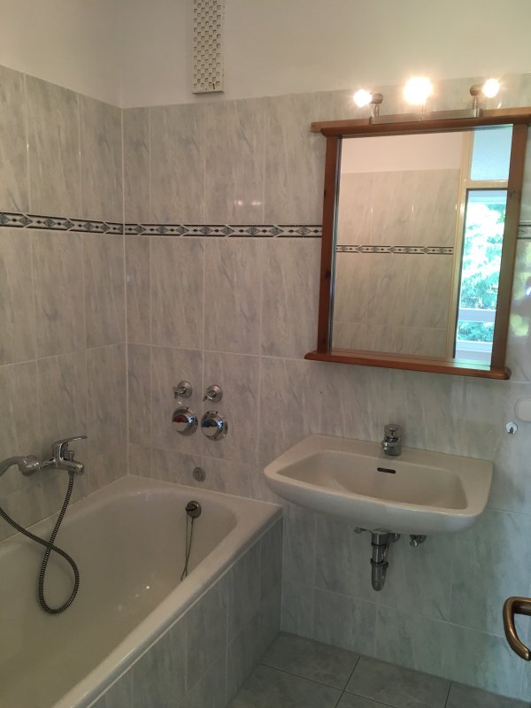 Die Wohnung befindet sich im 1. Stock eines Mehrfamilienhauses. Neben einem großen Wohnbereich mit Balkon in Südausrichtung, gibt es noch zwei weitere Zimmer. Von dem einen Zimmer geht ein Badezimmer mit Badewanne ab, das andere Badezimmer (mit Dusche) erreicht man über den Flur.