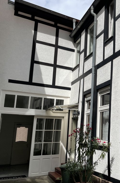 Zum Haus gehört ein Ladengeschäft und ein Innenhof.