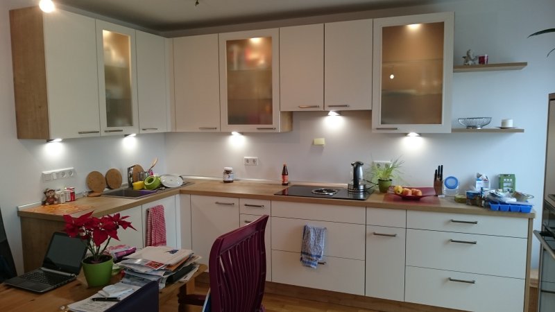 Die Wohnung ist komplett ausgestattet mit Waschmaschine, Wäschetrockner, Einbauküche, Dampfgarer, Spülmaschine,...
