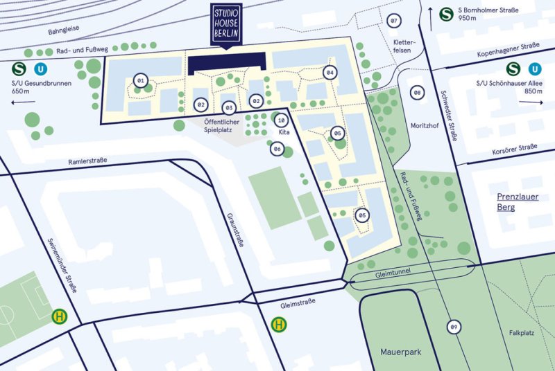 Beste Anbindung an den S-Bahn-Ring sowie U-Bhf Gesundbrunnen.