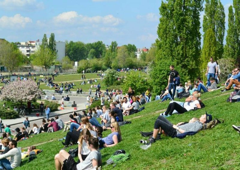 Angrenzend lädt der Mauerpark zum Erholen, Chillen und Picknicken mit Freunden ein.