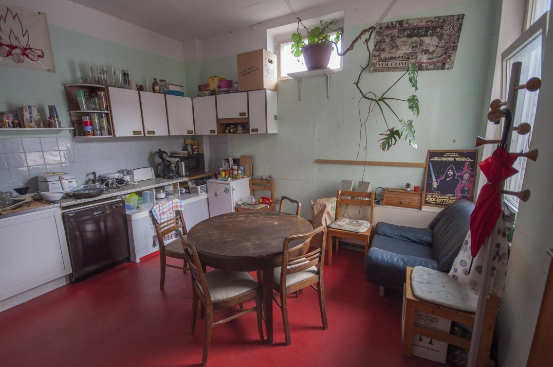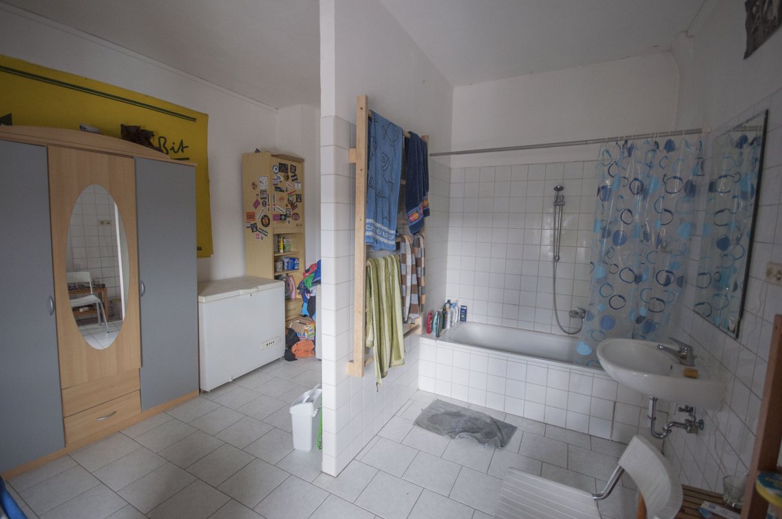 Zusätzlich zum eigenen Zimmer teilen sich die Bewohner ein großes gemütliches Wohnzimmer, ein großes Badezimmer mit Wanne und Waschmaschine, eine große Küche mit Geschirrspülmaschine und Speisekammer sowie einen kleinen Abstellraum. Für Fahrrad und Krimskrams steht zudem eine Abstellfläche im Keller zur Verfügung.