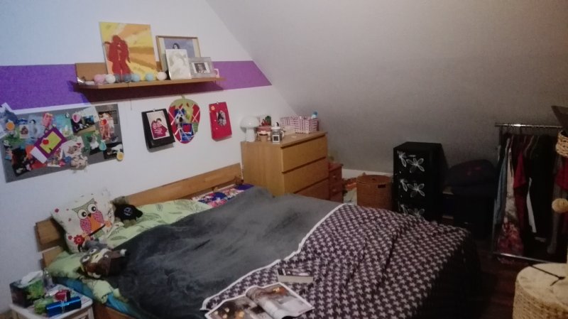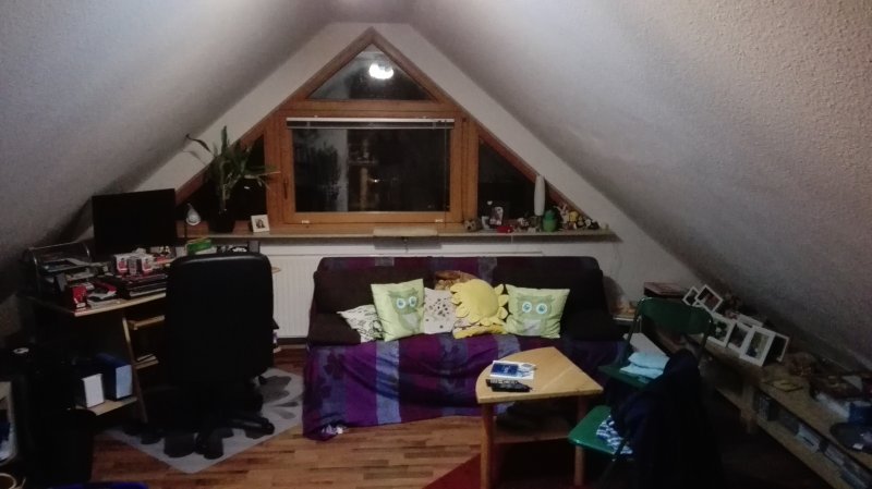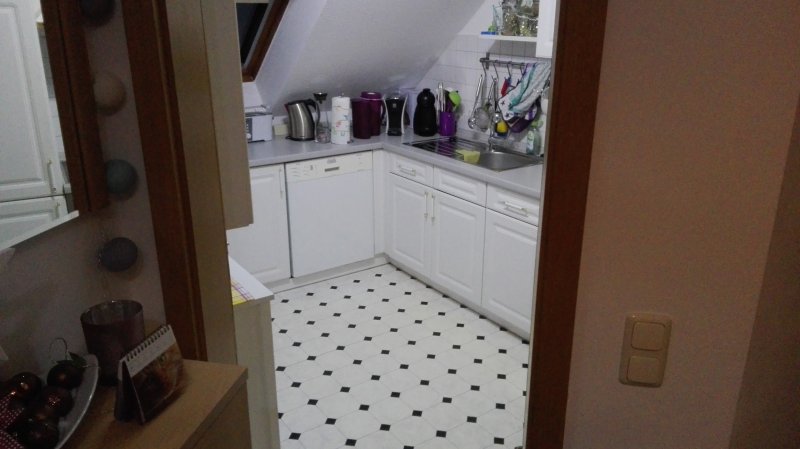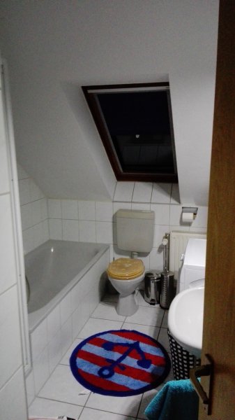 Bad mit WC mit Dachflächenfenster Dusche und Badewanne, Gäste WC, Wohnzimmer mit Balkon, Schlafzimmer, Küche mit Dachflächenfenster. Schlafzimmer