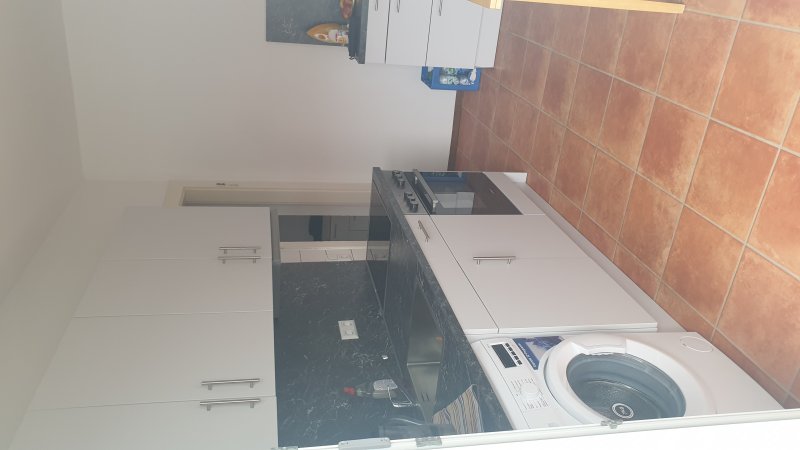 Es ist eine 3 Zimmer Wohnung und daraus wurde 2er WG gemacht. Es gibt ein Wohnzimmer mit der Couch und Küche mit Zugang zum Balkon. Wohnung ist frisch gestrichen und sieht sehr gepflegt aus.