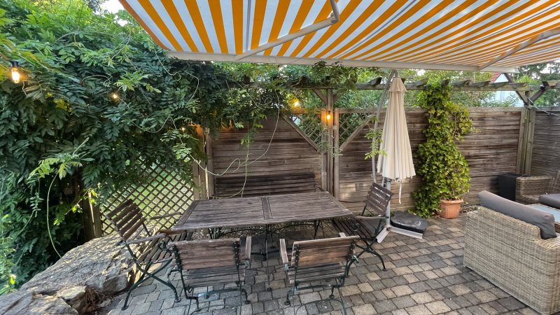 Ansonsten bietet das Haus eine moderne, großzügige Küche mit offenem Wohn-Essbereich, eine schöne Terrasse mit der Möglichkeit der Überdachung durch eine Markise und einen Stellplatz für dein Auto.