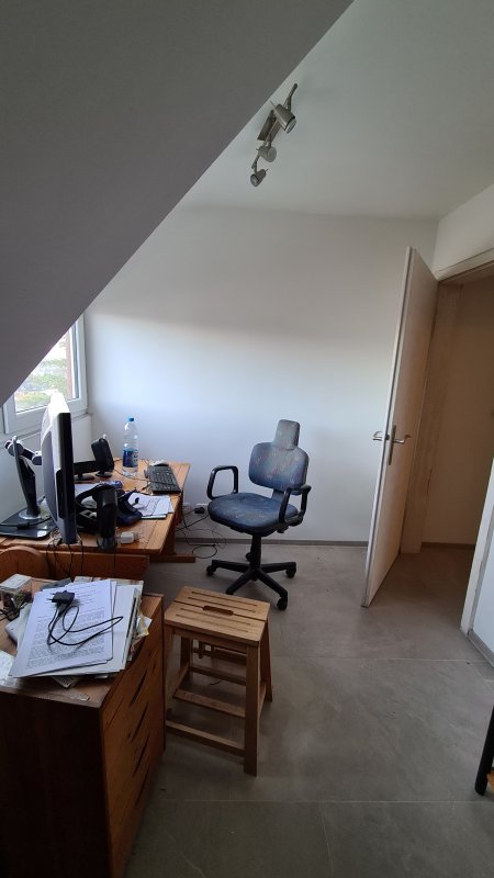 Die Wohnung befindet sich im Dachgeschoss eines Mehrfamilienhauses von ca. 1960.