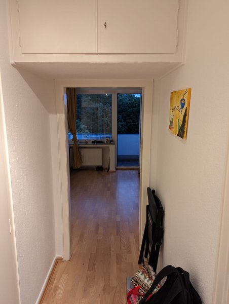 Schöne gemütliche Single-Wohnung zur Zwischenmiete für ein Jahr (01.09.2023-31.08.2024). Gerne an Studenten! Die Wohnung liegt im 4. Stock mit Aufzug. Die Wohnung verfügt über eine kleine separate Einbauküche, Badezimmer mit Badewanne - mit Platz für eine kleine Waschmaschine falls gewünscht - und ein großes Wohn-/Schlafzimmer, mit Zugang zu einer großen Balkon mit Blick aufs Grün.