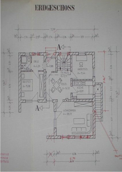 EG: große Küche, Esszimmer, Wohnzimmer, Fremdenzimmer, Dusche/WC,