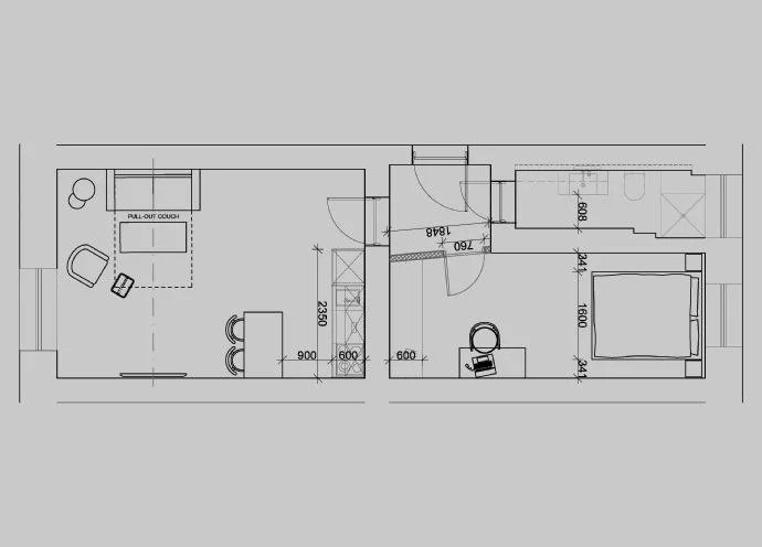 Die Wohnung verfügt über ein Wohn-Esszimmer, ein Schlafzimmer und ein Badezimmer.