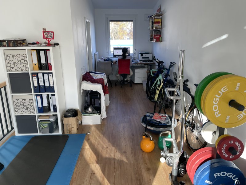 Der Boden ist mit pflegeleichtem Vinyl ausgelegt. Ein Glasfaseranschluss liegt bereits und ist in Benutzung.