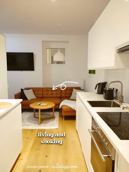 Wir vermieten eine vollmöblierte 2 Zimmerwohnung mit Küche und Bad mit Badewanne in der Leipziger Südvorstadt. Die Wohnung liegt ruhig in einer Seitenstraße und verfügt über zwei Betten und ein Sofa. Eine vollausgestattete Küche, ein großer Smart TV und Massivholzdielen runden das Bild ab.