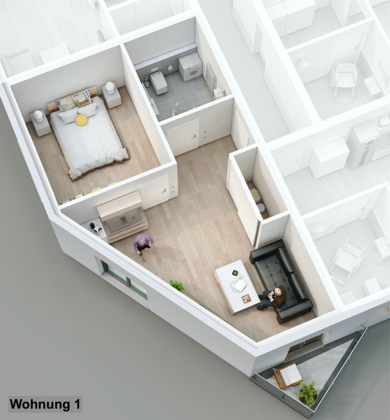 Direkt im Erdgeschoss befindet sich eine Tagespflege, die optional zu Ihrem Wohnalltag in Anspruch genommen werden kann. Alle Wohnungen sind mit einem integriertem Notruf-System ausgestattet und bieten Ihnen rund um die Uhr Sicherheit.