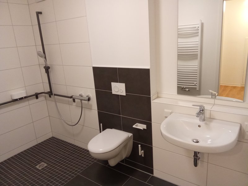 zwei barrierefreie Senioren Wohngemeinschaften mit je 12 Komfort-Apartments mit eigenem modernen Bad, eigene Terrasse und individuellem Möblierungsangebot