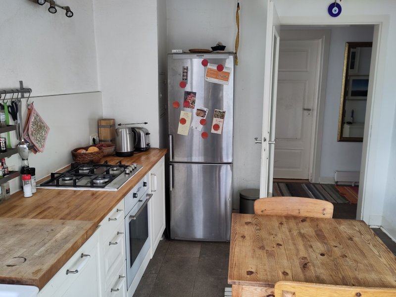 Helles, großes und charmantes Zimmer in 2er WG, mit allem inklusive. Holzparkettboden, 2 Fenstern mit Blick auf den Garten. Das Zimmer ist bereits möbliert: 2 große Schränke, ein Lesesessel und ein großes Bett mit 2 Nachttischen sind aktuell im Zimmer, nach Absprache sind Anpassungen aber auch möglich!