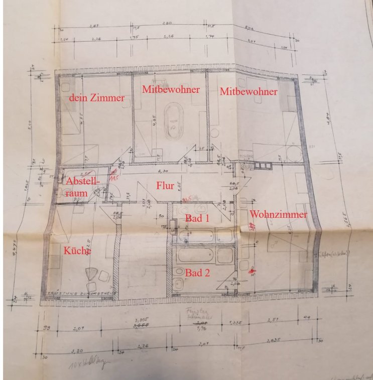 Zimmer in Südausrichtung. Nette Mitbewohner, schöne Kuche, gemeinsames Wohnzimmer, 2 Bäder, gute Anbindung an Bus und Bahnhof, mit dem Fahrrad schnell bei der Hochschule, Einkaufsmöglichkeiten zwei Straßen weiter
