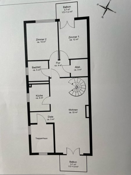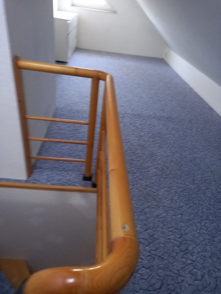 Durch die Diele gelangen Sie in den über 32 m2 großen Wohnraum, der über einen südwestlich ausgerichteten Balkon verfügt. Gegenüber befindet sich eine voll ausgestattete Küche. Ein kleiner Flur führt Sie zu zwei weiteren Zimmern, von denen eines ebenfalls über einen Balkon verfügt. Nebenan liegt das Vollbad, welches mit hellem Marmor gefliest ist. Gegenüber befindet sich eine Abstellkammer, die genügend Stauraum für übliche Haushaltsutensilien bietet. Beide Etagen verfügen über eine Gegensprechanlage. Eine Mahagoni Massivholz Treppe verbindet das Obergeschoss mit dem Dach-geschoss. Auf weiteren 62 m2 finden Sie zwei schöne große Zimmer, ein Duschbad mit WC, einen Abstellraum sowie den Zugang zum Spitzboden, welcher nur von der jeweiligen Wohnung aus zugänglich ist. Dieser ist gedämmt, belichtet und belüftet und steht zusätzlich als Hobbyraum zur Verfügung. In der gesamten Wohnung ist helles Laminat verlegt. Jede Einheit verfügt über eine eigene Gasheizung, welche sich in dem Abstellraum im Dachgeschoss befindet. Zur Wohnung gehört eine abgeschlossene Einzelgarage hinter dem Haus.