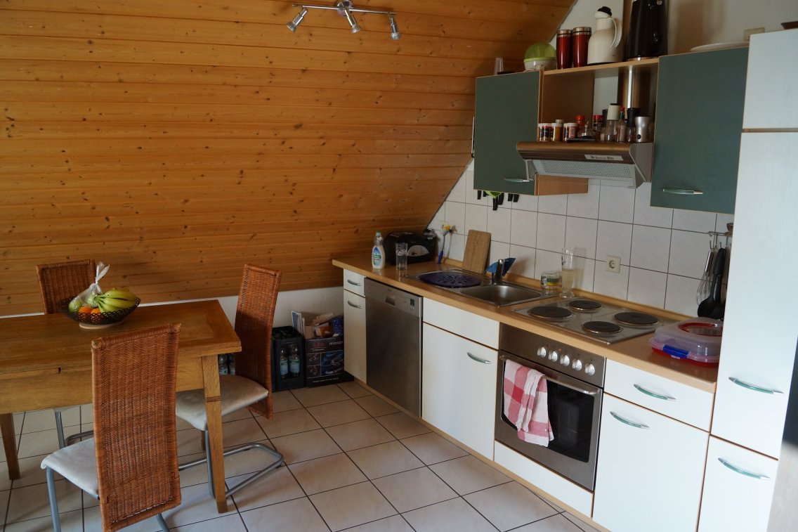 Die Wohnung besitzt eine Einbauküche mit Spülmaschine.