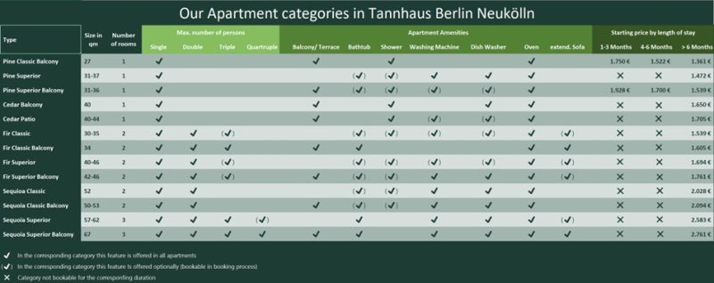 Preise variieren je nach Aufenthaltszeitraum und Mietdauer. Nach Ablauf des Mietvertrages sind Neuverträge für die Verlängerung des Aufenthaltes möglich.