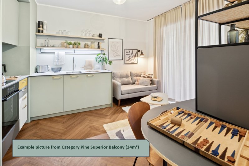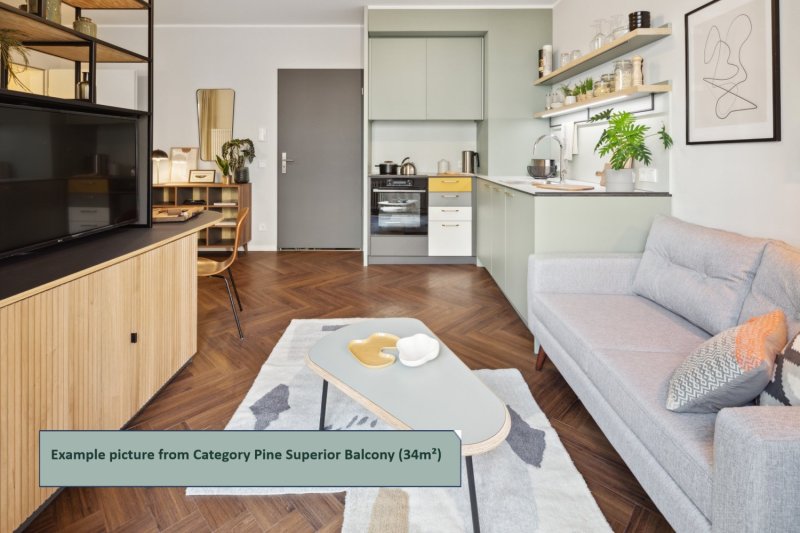 Zentral und doch tiefenentspannt. Auf 34 Quadratmetern erleben Sie unser Fir Classic Balcony Apartment jenseits des turbulenten Stadtlebens. Mit separatem Wohn- und Schlafbereich schaffen Sie eine klare Trennung zwischen nächtlicher Ruhe und täglichem Wohnen innerhalb Ihrer eigenen 4 Wände. In einer Zeit wo wohnen und arbeiten mehr und mehr ineinandergreifen, ist unser Fir Classic Balcony Apartment die perfekte Basis für Ihr Home Office. Unsere Fir Apartments verfügen allesamt über einen liebevoll gestalteten Wohn- und Essbereich mit offener Küche. Perfektioniert wird Ihr Wohnerlebnis mit einem eigenen Balkon.
