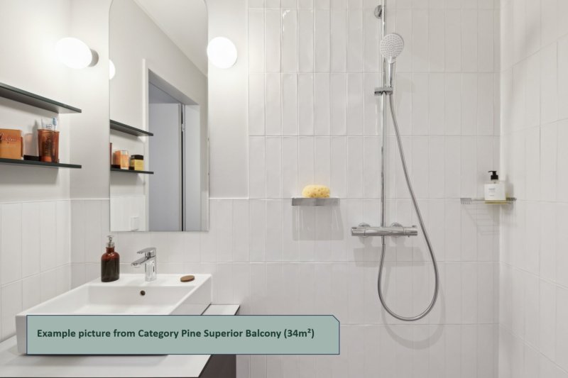 Bilder, Grundrisse und dargestellte Möblierung sind Beispiele unseres Musterzimmers der Kategorie Pine Superior Balcony.