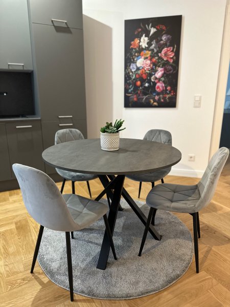 Durch die gegebene Einrichtung, gibt es nichts Weiteres um unbeschwert einzuziehen und sich wohl zu fühlen. Wie auch durch die Bilder ersichtlich ist, werden Sie die ersten Mieter sein, die einziehen. Alles ist neu, frisch und extra hygienisch sauber. Das hochwertige Boxspringbett wird Sie sicher auf höchstem Niveau schlafen lassen.
