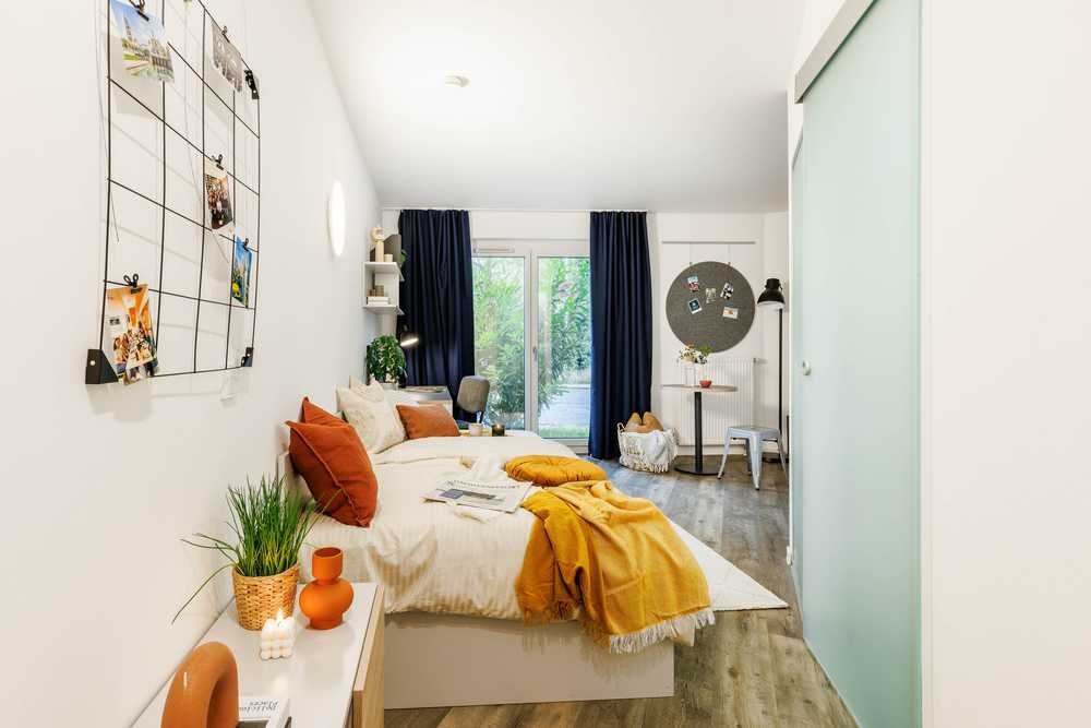 • Gemeinschaftsräume: Rezeptionslounge, Gemeinschaftsküche, Lernraum, Movie- & Gaming Lounge, Fitnessstudio, Innenhof, Dachterrasse, Fahrradkeller und Waschsalon