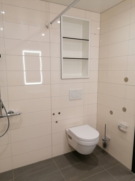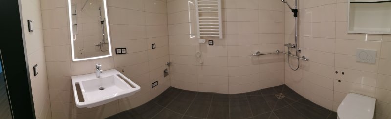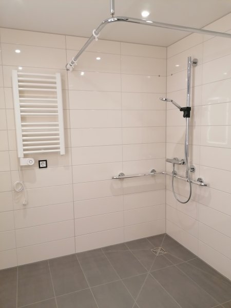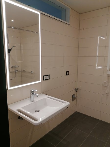 - pflegegerechtes Badezimmer mit schwellenloser Dusche