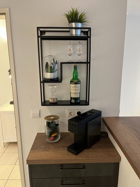 Küche: Komplett neue Maß-Einbauküche mit Induktionsherd, Dunstabzugshaube, Kühl-/Gefrierkombination und Spülmaschine. Alle Elektrogeräte sind Markengeräte von Bosch. Die Küche ist voll ausgestattet mit Geschirr, Besteck, Töpfen, Wasserkocher, Toaster und Kaffeevollautomat.