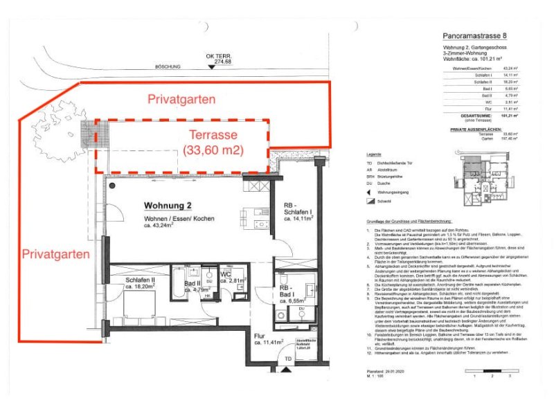 Die Wohnung befindet sich in einem modernen Mehrfamilienhaus (Baujahr 2019) am nördlichen Hang der Stadt. Durch ihre südliche Ausrichtung hat die Wohnung den gesamten Tag über direkte Sonne.Die großzügige Terrasse (33,5 m2) geht nahtlos in den Gartenbereich über und vermittelt durch diese geschickte Öffnung den Eindruck einer doppelt so großen Fläche.