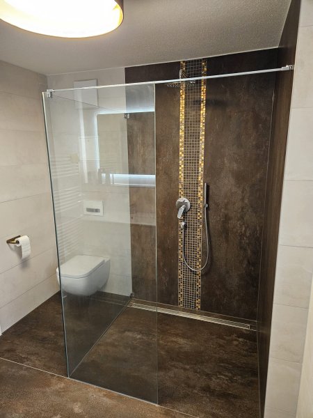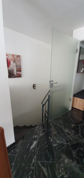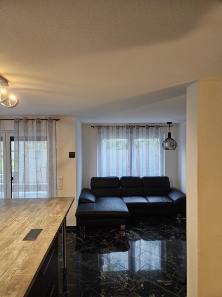Im Untergeschoss befindet sich auch ein Waschraum zur gemeinschaftlichen Nutzung, mit Platz für Waschmaschine und Trockner. Die Wohneinheit ist offen und großzügig geschnitten und bietet hohen Komfort nach neuesten technischen Standards. Die Rollläden im Erdgeschoss sind überwiegend mit elektrischen Antrieben ausgestattet. In der gesamten Wohnung ist ein Granitboden verlegt, der in der kalten Jahreszeit durch eine Fußbodenheizung erwärmt wird. Die Wohnung verfügt über eine hochwertige Einbauküche mit z.B. einem Miele-Induktionskochfeld mit integriertem Dunstabzug und einer Kühl-Gefrierkombination.