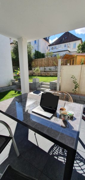 Die Maisonette-Wohnung befindet sich im Erd- und Untergeschoss eines Mehrfamilienhauses mit 4 modernen Wohneinheiten, wobei die Wohnung über zwei Geschosse des Gebäudes durch eine Zweiholmtreppe in Stahlkonstruktion verbunden ist. Das 2019 fertiggestellte Haus ist unterkellert und verfügt über einen direkten Zugang zur Tiefgarage, in der ein eigener Garagenstellplatz mit separatem elektrischem Garagentor vorhanden ist. Zur Wohnung gehört eine großzügige Gartenfläche zur Eigennutzung.