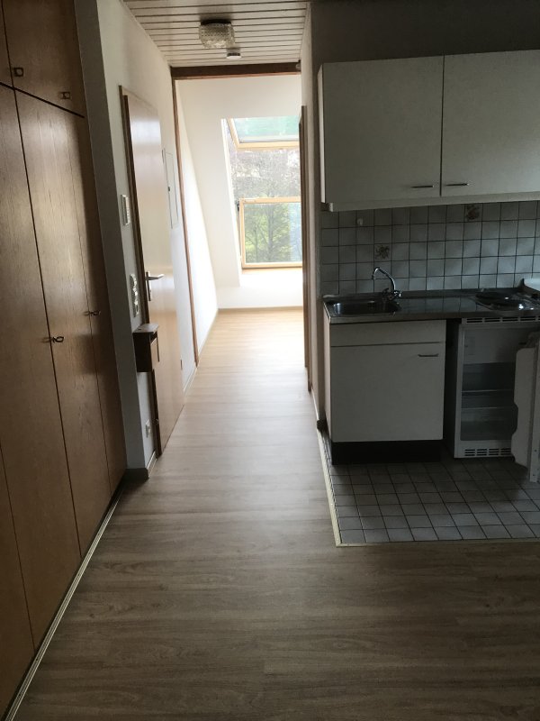 Die Einzimmer-Wohnung hat eine Einbauküche und ist teilweise möbliert.