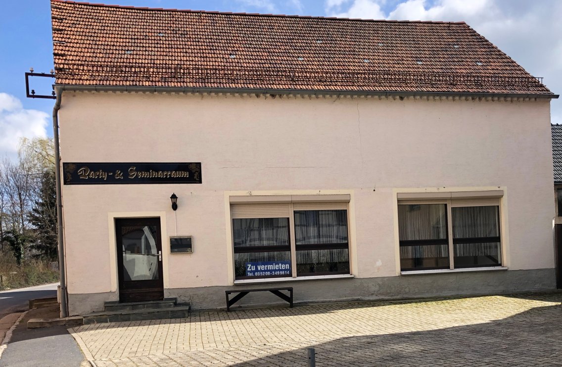 Ob Seminar, Feiern oder andere Veranstaltungen - hier finden circa 60 Personen Platz. Die Räumlichkeiten sind mit einer Theke und einem Sanitärbereich ausgestattet, die Terrasse (Außenbereich 120 m²) vor dem Gebäude sowie der Parkplatz werden zur Nutzung überlassen.