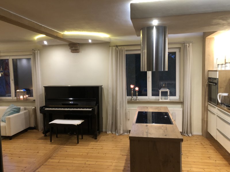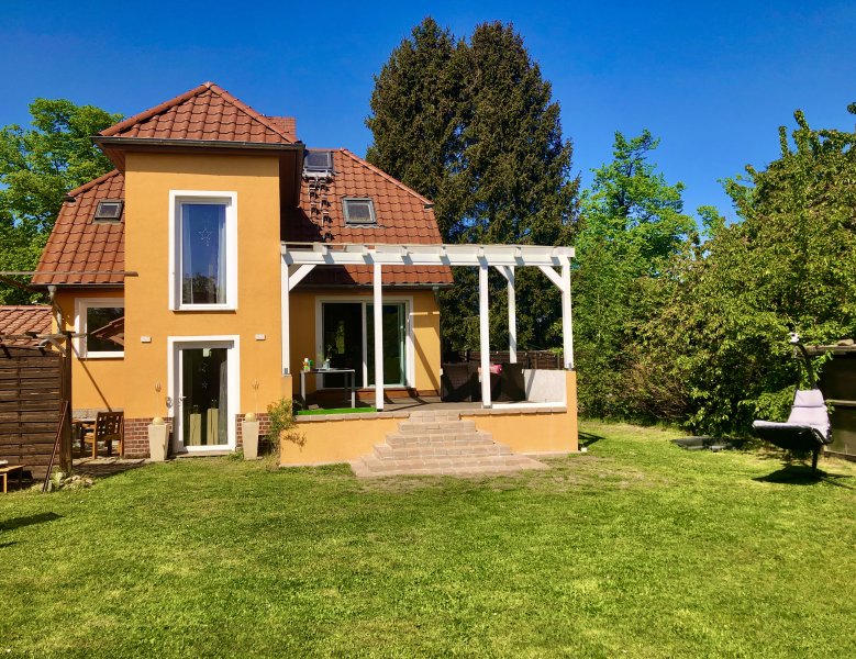 Ein kleines möbliertes Zimmer ( ca. 14 qm) mit Bett ( 140cm breit), Schreibtisch und zwei Fenstern. Es ist hell und hat offene schöne Holzbalken. Mitbenutzung des ganzen Hauses mit modernem Wohn - Eß und Küchenbereich mit riesiger Terrasse und großem Garten. Das Zimmer befindet sich in einem sanierten alten lichtdurchfluteten Haus mit Klavier und Kamin fußläufig an der Döberitzer Heide.