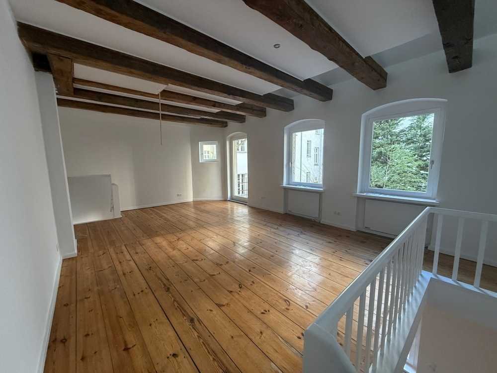 Die Remise erstreckt sich über zwei Etagen und verfügt mit einem komfortablen Schnitt und einem großzügigen Loft-Charakter über eine Wohnfläche von ca. 95 m².