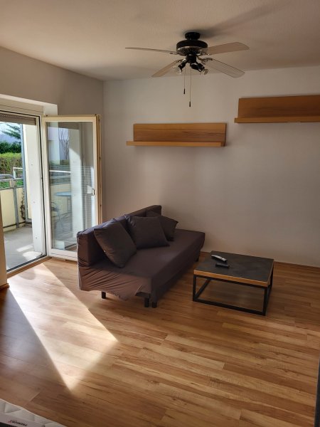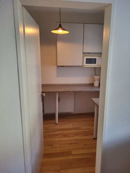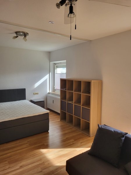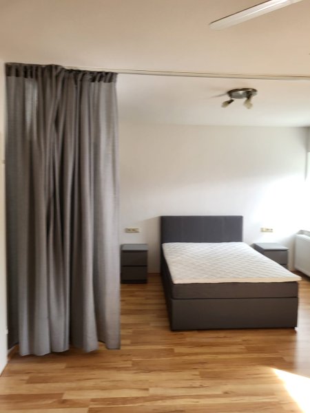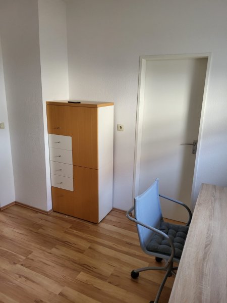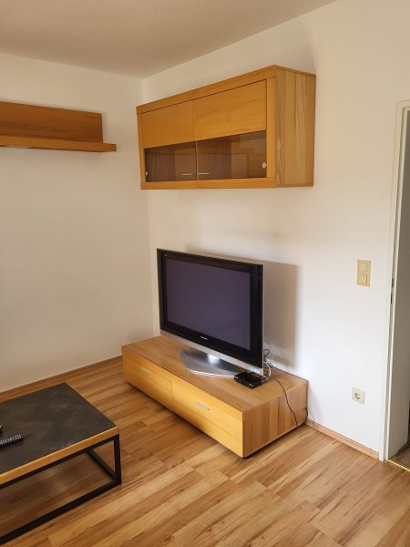 Eine voll möblierte Wohnung, lädt zum hereinkommen und wohlfühlen ein. Besonders hervorzuheben ist der Balkon, auf dem es sich wunderbar vom Alltag erholen lässt. Im vorhandenen Kellerraum können Sie zu lagernde Gegenstände bequem aufbewahren. Zur Verfügung steht Ihnen außerdem eine Einbauküche mit Spülmaschine. Im Schlafbereich befindet sich ein Futon Boxspringbett mit zwei Nachttischen und Kleiderschrank. Im Wohnbereich, durch einen Raumtrenner unterteilt, befindet sich eine 3-Sitzer Couch mit Schlaffunktion, Lowboard mit TV, Hängeschrank und Regale. Im Esszimmer befindet sich ein Schreibtisch mit Stuhl, Bartisch mit Stühlen und Schrank für Geschirr.